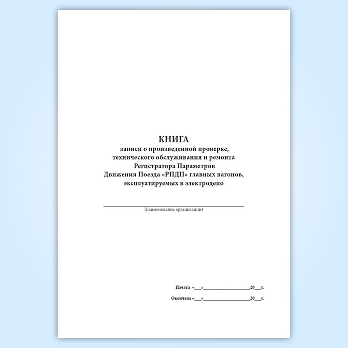 Книга записи о произведенной проверке, технического обслуживания и ремонта Регистратора Параметров Движения Поезда «РПДП» главных вагонов, эксплуатируемых в электродепо в Бердске купить