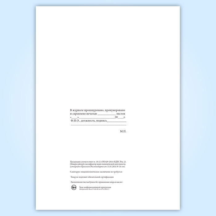 Вы получаете печатную продукцию прошнурованной и c местом для вашей печати в соответствии с действующими нормативными документами: