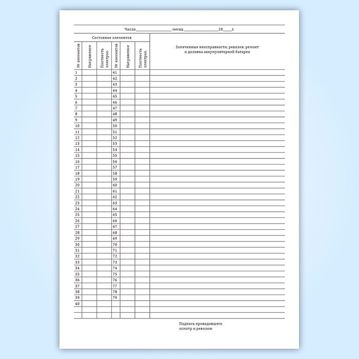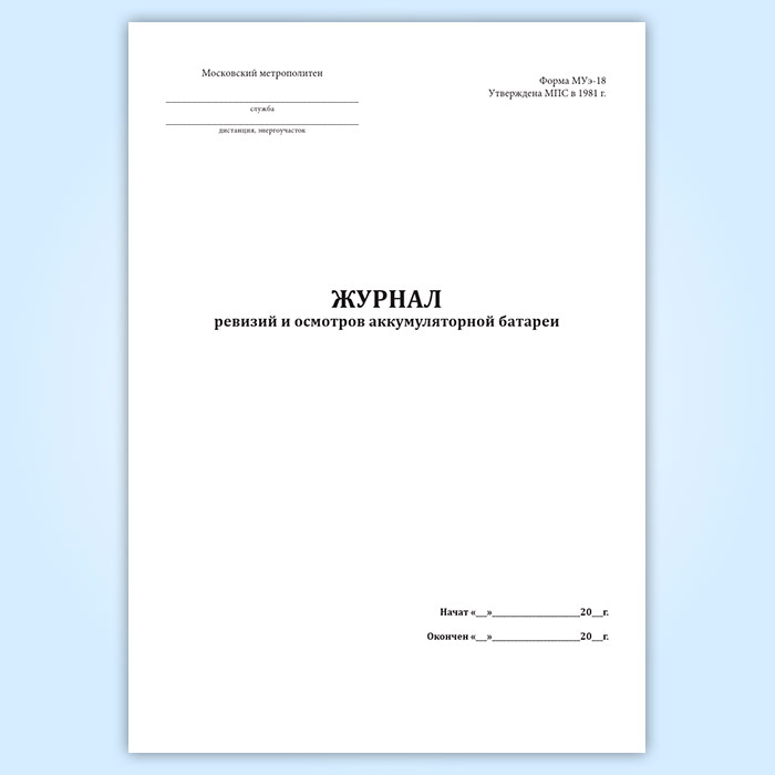 Журнал ревизий и осмотров аккумуляторной батареи (форма МУэ-18) в Бердске купить