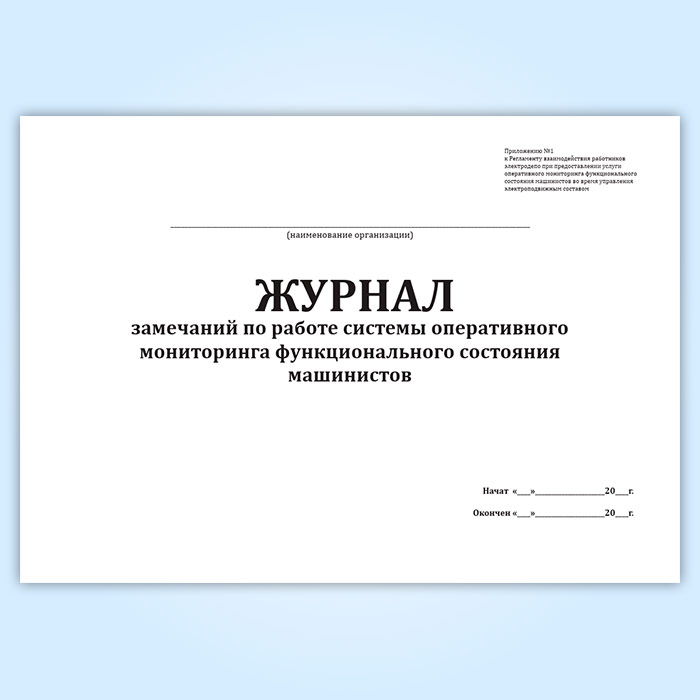 Журнал замечаний по работе системы оперативного мониторинга функционального состояния машинистов в Бердске купить
