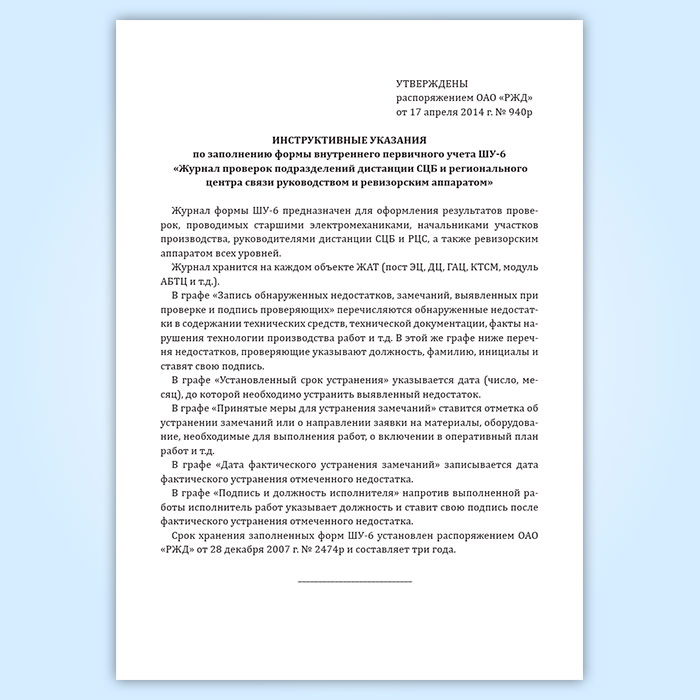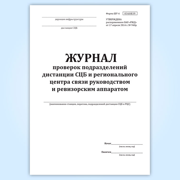 Журнал проверок подразделений дистанции СЦБ и регионального центра связи руководством и ревизорским аппаратом (форма ШУ-6) в Бердске купить