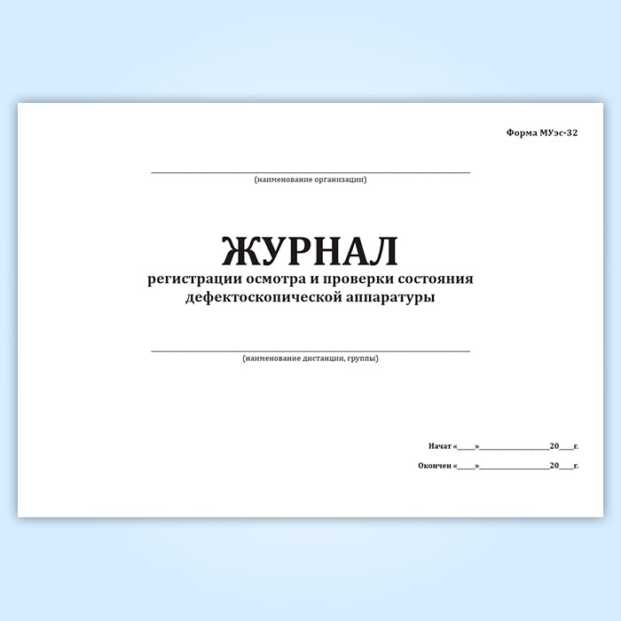 Журнал регистрации осмотра и проверки состояния дефектоскопической аппаратуры (форма МУэс-32) в Бердске купить