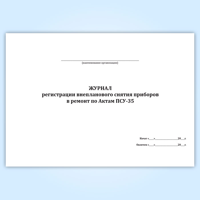 Журнал регистрации внепланового снятия приборов в ремонт по Актам ПСУ-35 в Бердске купить