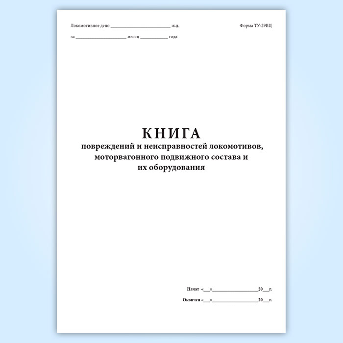 Книга повреждений и неисправностей локомотивов, моторвагонного подвижного состава и их оборудования (форма ТУ-29ВЦ) в Бердске купить