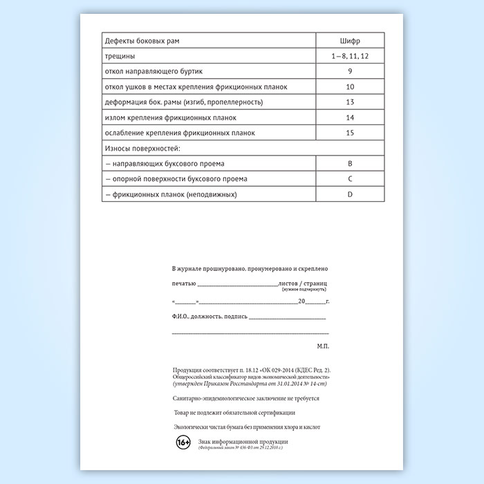 Журнал учета результатов осмотра и дефектоскопирования боковых рам тележек грузовых вагонов в Бердске купить