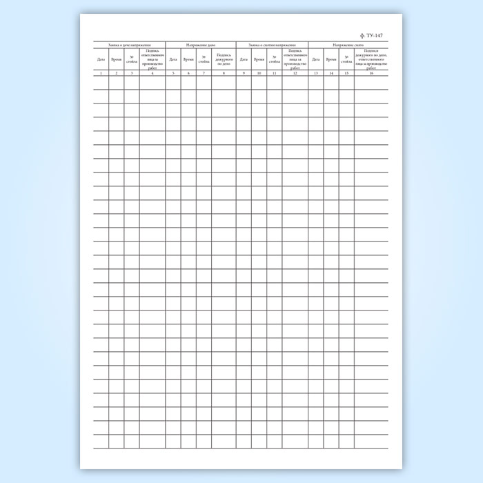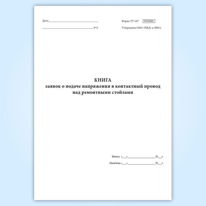 Книга заявок о подаче напряжения в контактный провод над ремонтными стойлами (форма ТУ-147) в Бердске купить