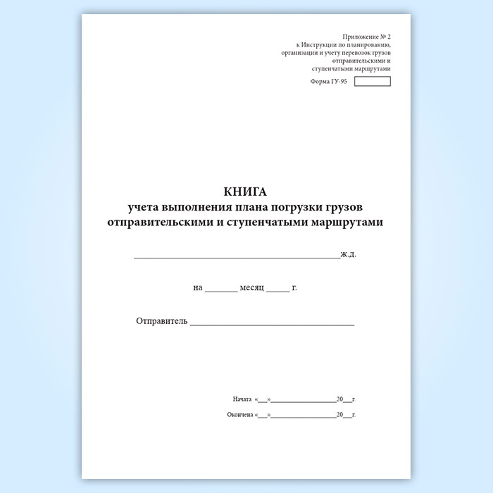 Книга учета выполнения плана погрузки грузов отправительскими и ступенчатыми маршрутами (форма ГУ-95) в Бердске купить