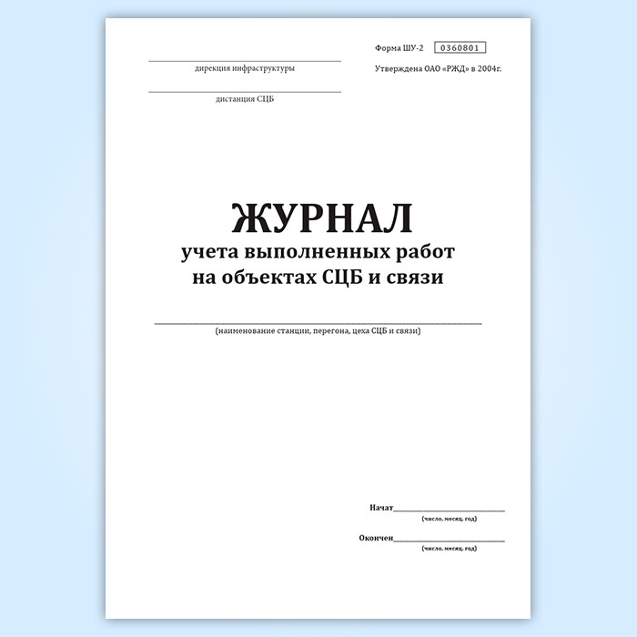 Журнал учета выполненных работ на объектах СЦБ и связи (форма Шу-2) в Бердске купить