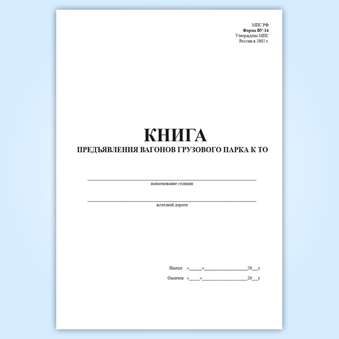 Книга предъявления вагонов грузового парка к ТО (форма ВУ-14) в Бердске купить