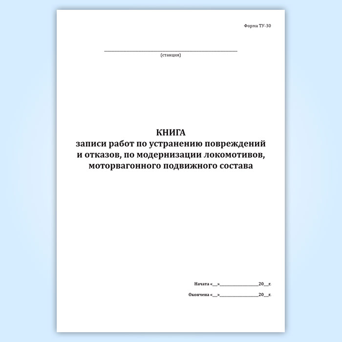 Книга записи работ по устранению повреждений и отказов, по модернизации локомотивов, моторвагонного подвижного состава (форма ТУ-30) в Бердске купить