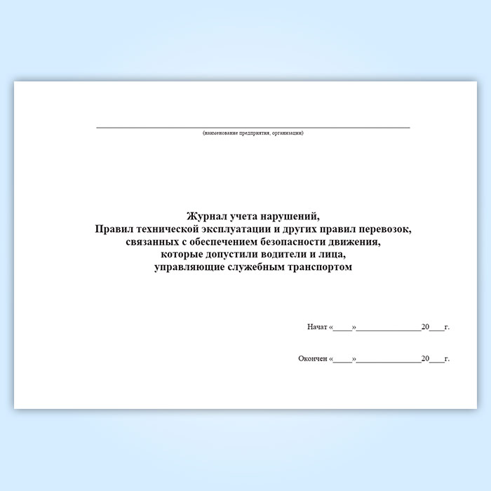 Журнал учета нарушений, правил технической эксплуатации и других правил перевозок, связанных с обеспечением безопасности движения, которые допустили водители и лица, управляющие служебным транспортом в Бердске купить