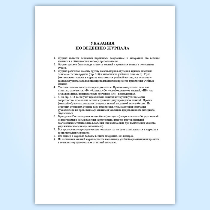 Журнал учета занятий по подготовке водителей транспортных средств категории «В» в Бердске купить
