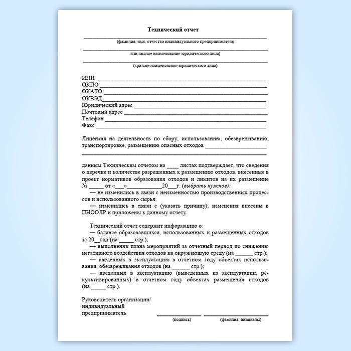 Технический отчет о неизменности производственного процесса, используемого сырья и об обращении с отходами в Бердске купить