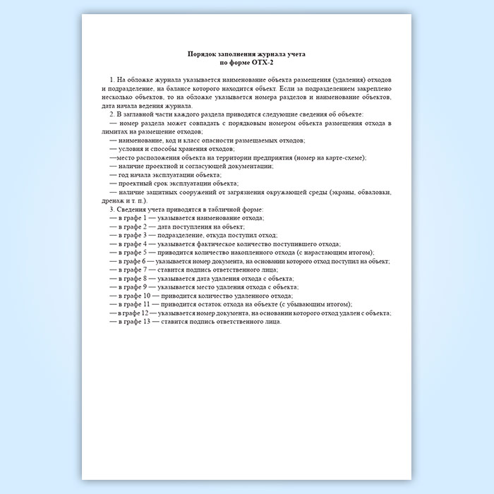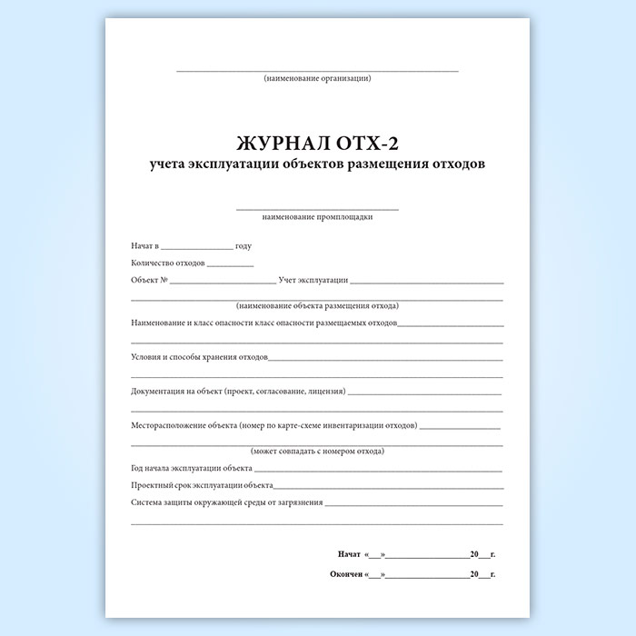 Журнал учета эксплуатации объектов размещения отходов ОТХ-2 в Бердске купить