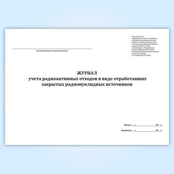 Журнал учета радиоактивных отходов в виде отработавших закрытых радионуклидных источников в Бердске купить