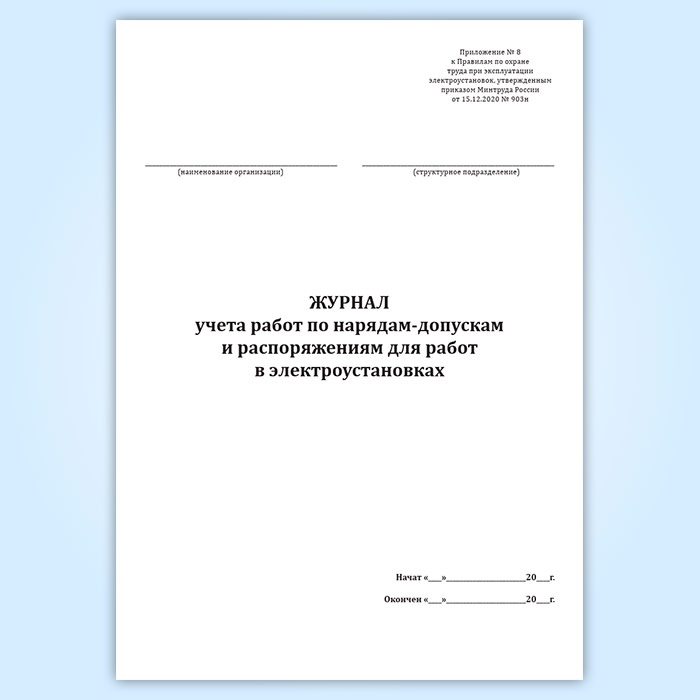 Журнал учета работ по нарядам-допускам и распоряжениям для работы в электроустановках в Бердске купить