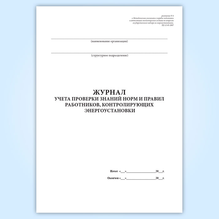 Журнал учета проверки знаний норм и правил работников, контролирующих энергоустановки в Бердске купить