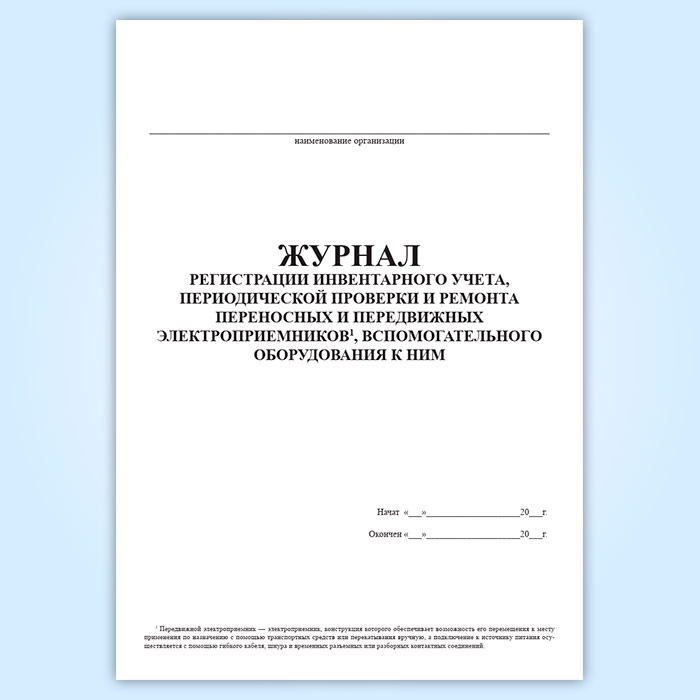 Журнал регистрации инвентарного учета, периодической проверки и ремонта переносных и передвижных электроприемников, вспомогательного оборудования к ним в Бердске купить