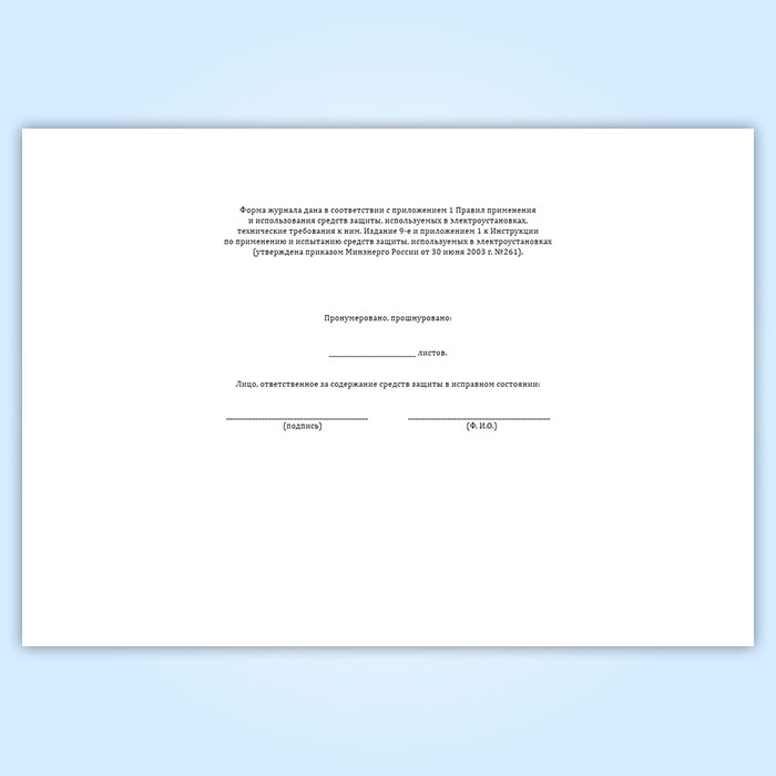 Журнал учета и содержания средств защиты (используемых в электроустановках) в Бердске купить