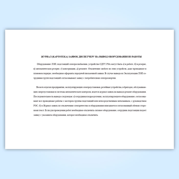 Журнал (картотека) заявок диспетчеру на вывод оборудования из работы в Бердске купить