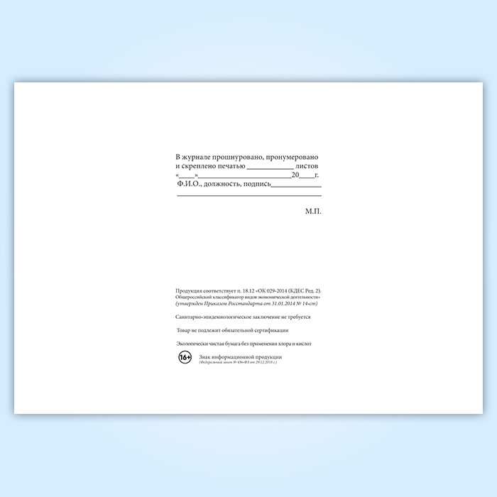 Вы получаете печатную продукцию прошнурованной и c местом для вашей печати в соответствии с действующими нормативными документами: