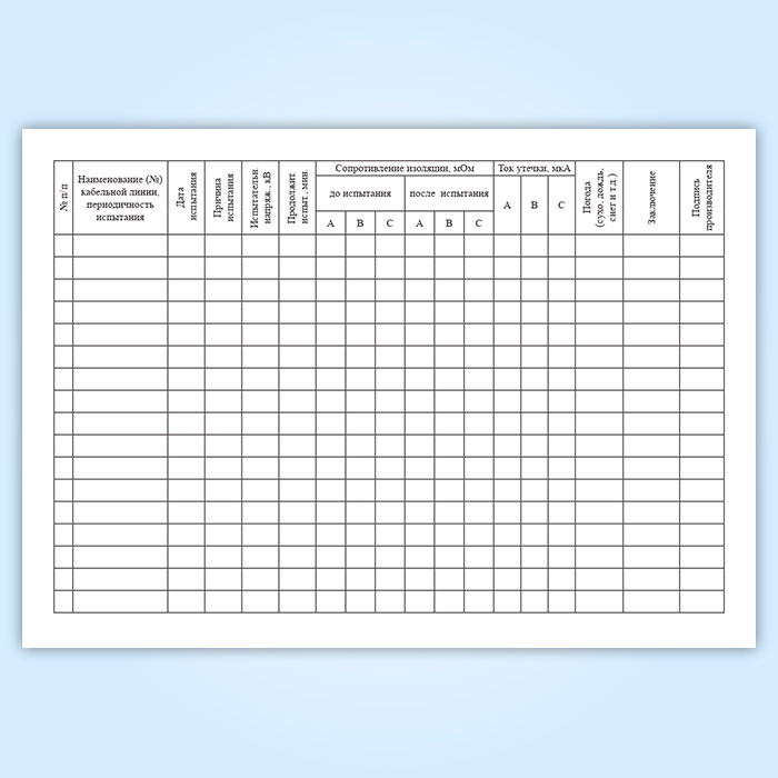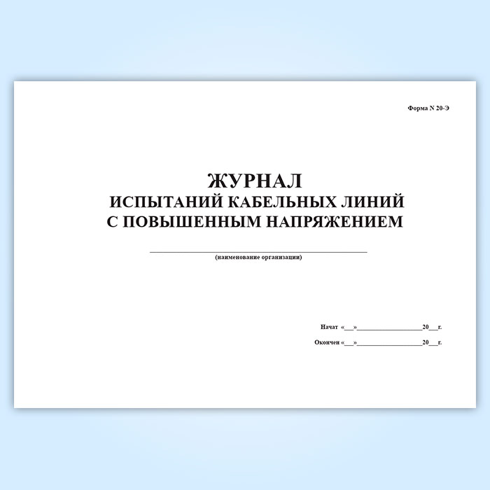 Журнал испытаний кабельных линий с повышенным напряжением (форма № 20-Э) в Бердске купить