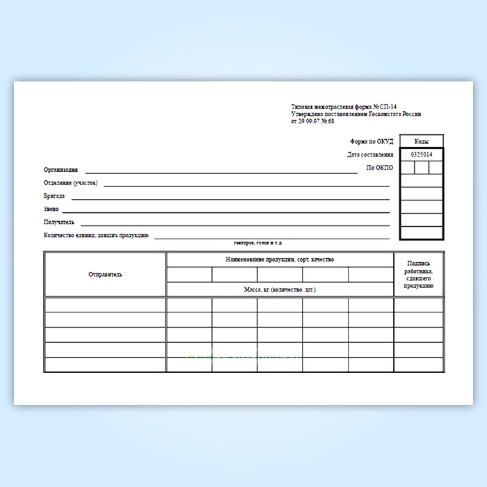 Дневник поступления сельскохозяйственной продукции (форма № СП-14) в Бердске купить