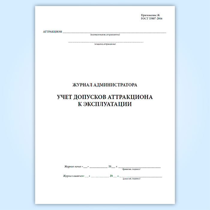 Журнал администратора. Учет допусков аттракциона к эксплуатации в Бердске купить