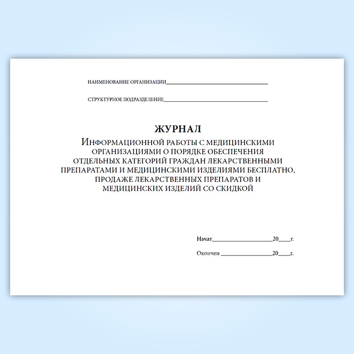 Журнал информационной работы с медицинскими организациями о порядке обеспечения отдельных категорий граждан лекарственными препаратами и медицинскими изделиями бесплатно, продаже лекарственных препаратов и медицинских изделий со скидкой в Бердске купить