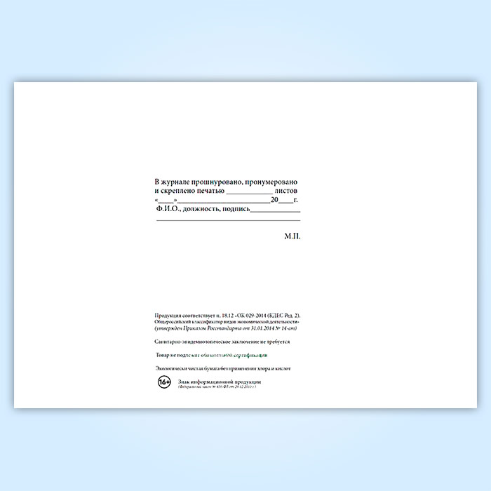 Вы получаете печатную продукцию прошнурованной и c местом для вашей печати в соответствии с действующими нормативными документами: