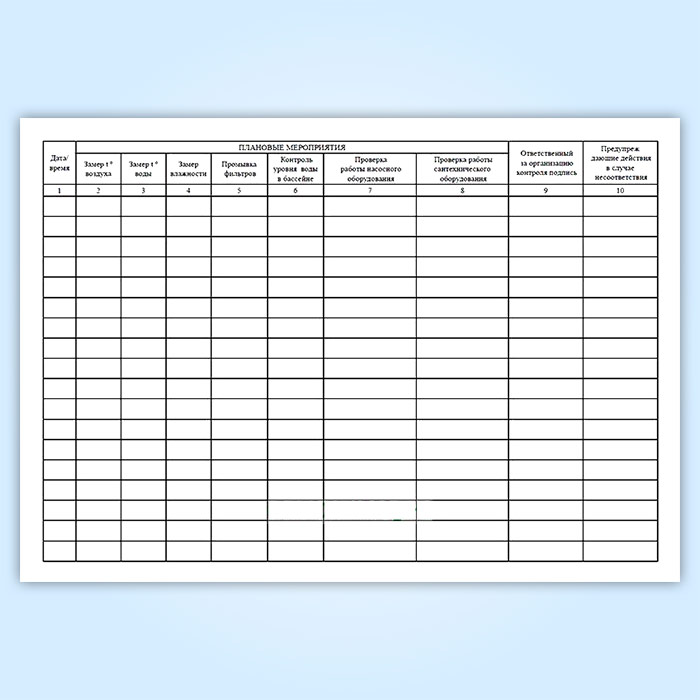 Журнал плановых мероприятий по бассейну в Бердске купить