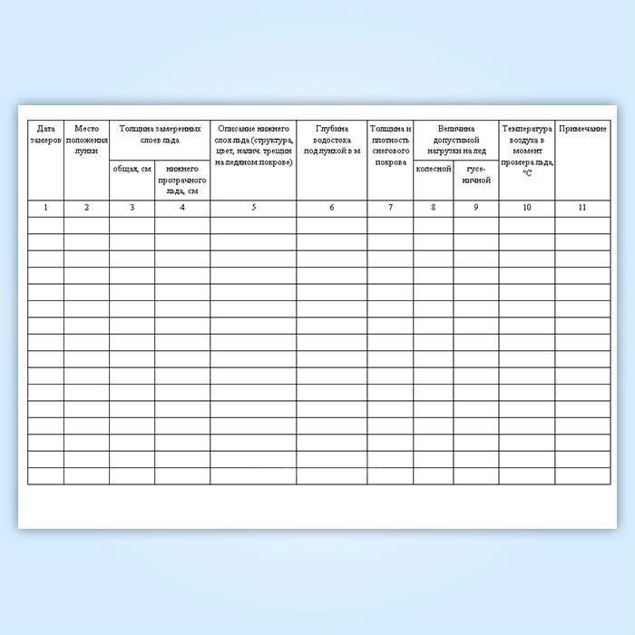 Журнал промеров толщины льда и определения грузоподъемности ледяного покрова в Бердске купить