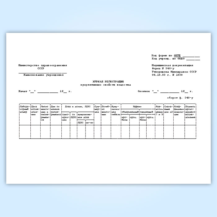 Журнал регистрации кумулятивных свойств вещества (форма № 340-у) в Бердске купить