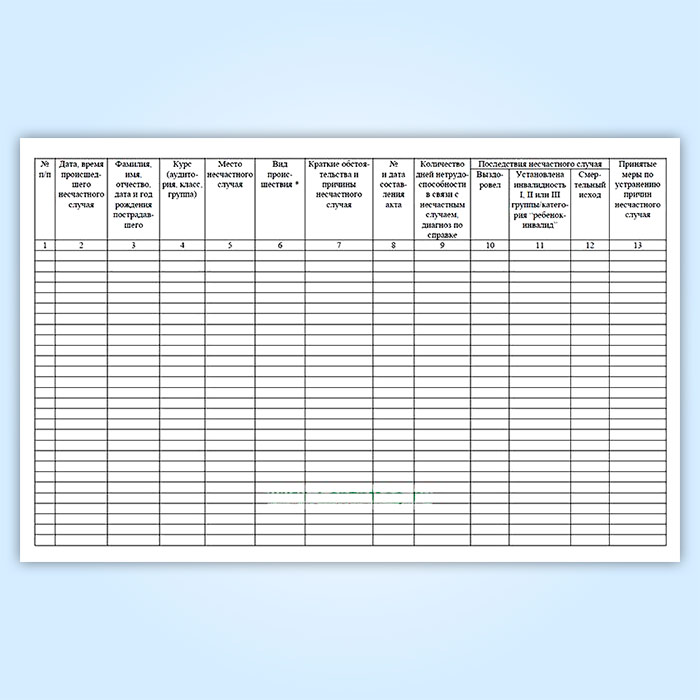 Журнал регистрации несчастных случаев с обучающимися в Бердске купить