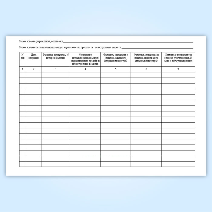 Журнал регистрации операций с использованными ампулами из-под наркотических средств и психотропных веществ у главной медицинской сестры стационарной медицинской организации в Бердске купить