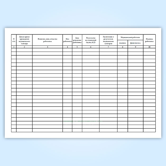 Журнал регистрации предрейсовых, предсменных медицинских осмотров (Приказ Минздрава РФ от 15 декабря 2014 г. N 835н) в Бердске купить