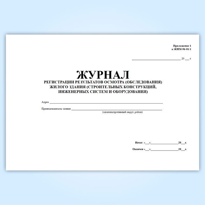 Журнал регистрации результатов осмотра (обследования) жилого здания (строительных конструкций, инженерных систем и оборудования). (Приложение к форме ЖНМ-96-01/1) в Бердске купить