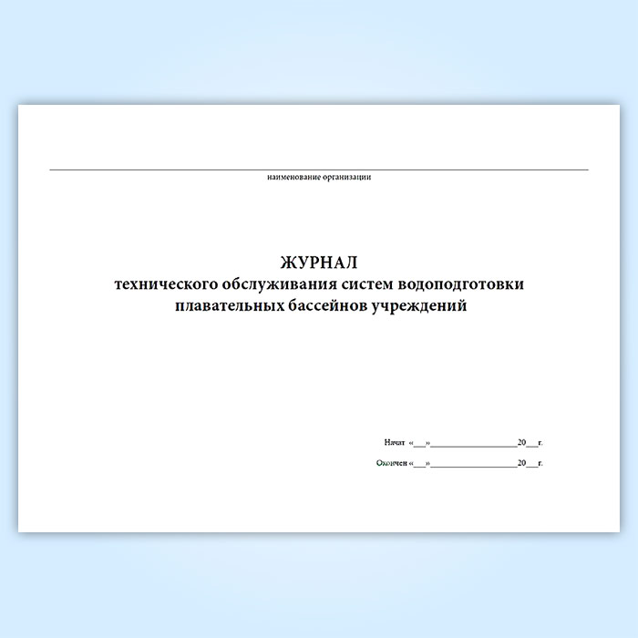 Журнал технического обслуживания систем водоподготовки плавательных бассейнов учреждений в Бердске купить