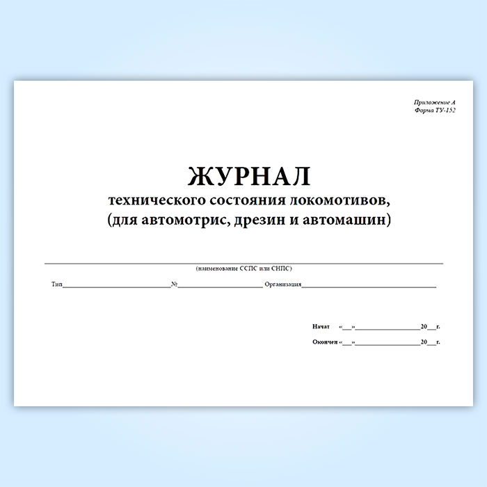Журнал технического состояния локомотивов (для автомотрис, дрезин и автомашин) (форма ТУ-152) в Бердске купить