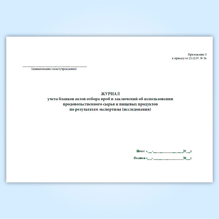 Журнал учета бланков отбора проб и заключений об использовании продовольственного сырья и пищевых продуктов в Бердске купить