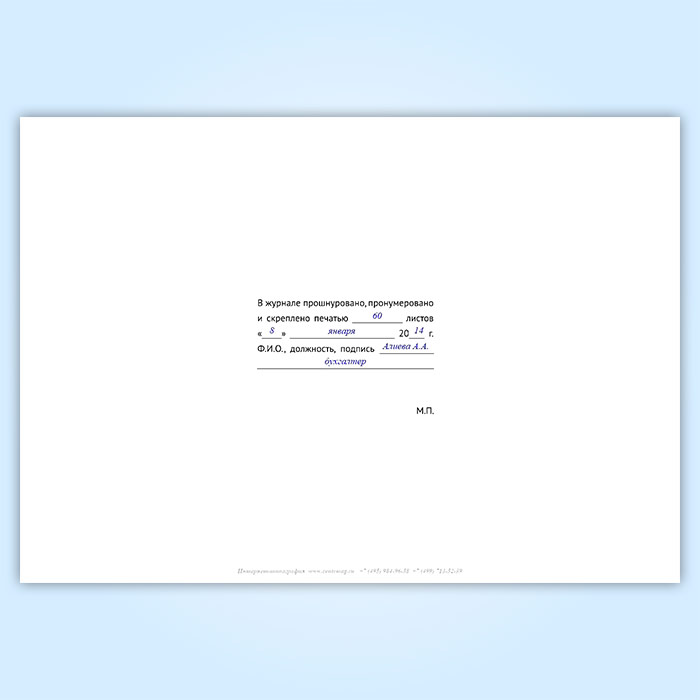 Вы получаете печатную продукцию прошнурованной и c местом для вашей печати в соответствии с действующими нормативными документами: