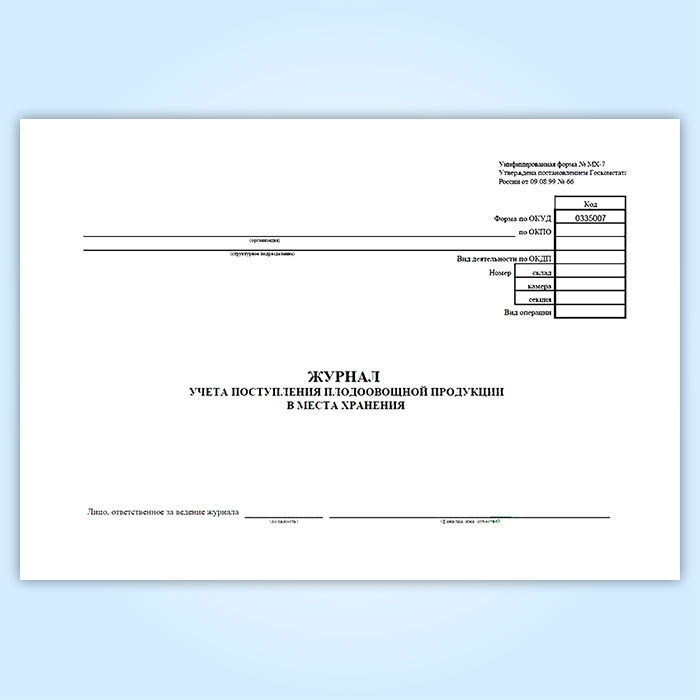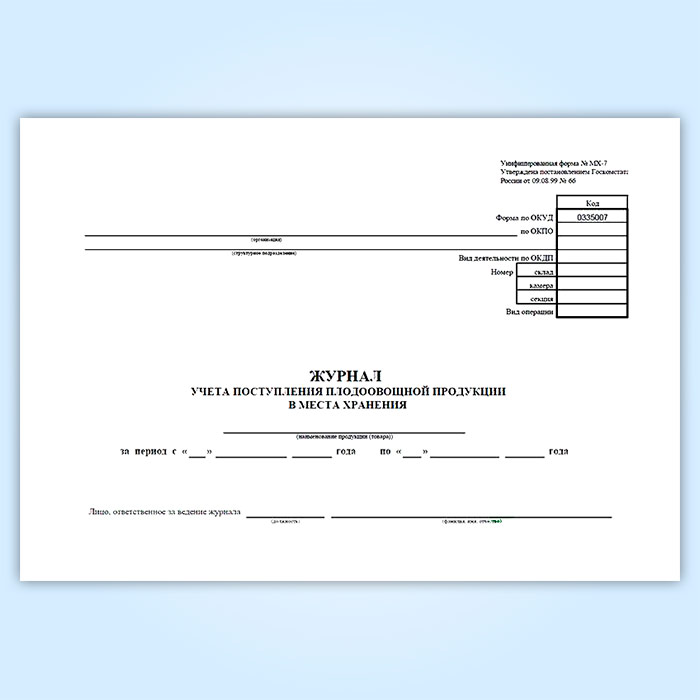 Журнал учета поступления плодоовощной продукции в места хранения (форма МХ-7) в Бердске купить