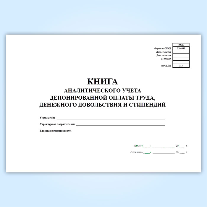 Книга аналитического учета депонированной заработной платы, денежного довольствия и стипендий (код формы 0504048) в Бердске купить