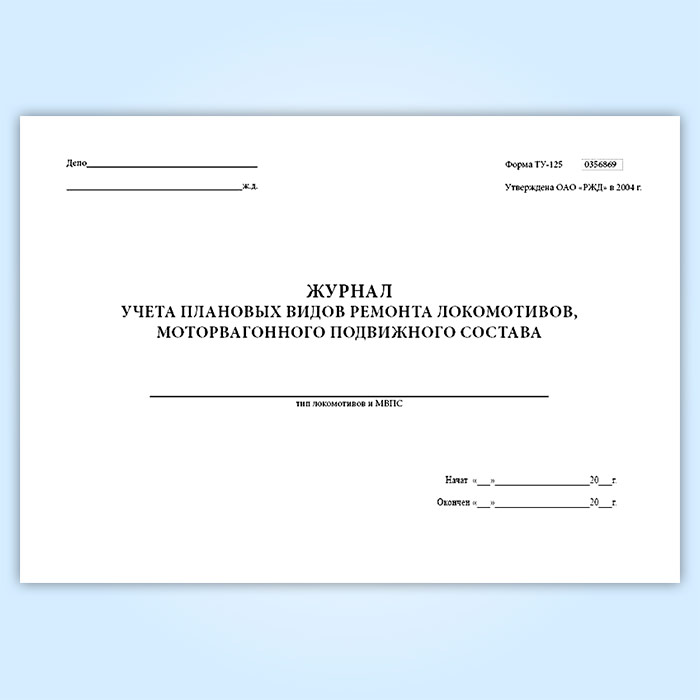 Книга учета плановых видов ремонта локомотивов, моторвагонного подвижного состава (форма ТУ-125) в Бердске купить