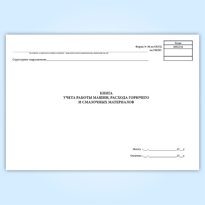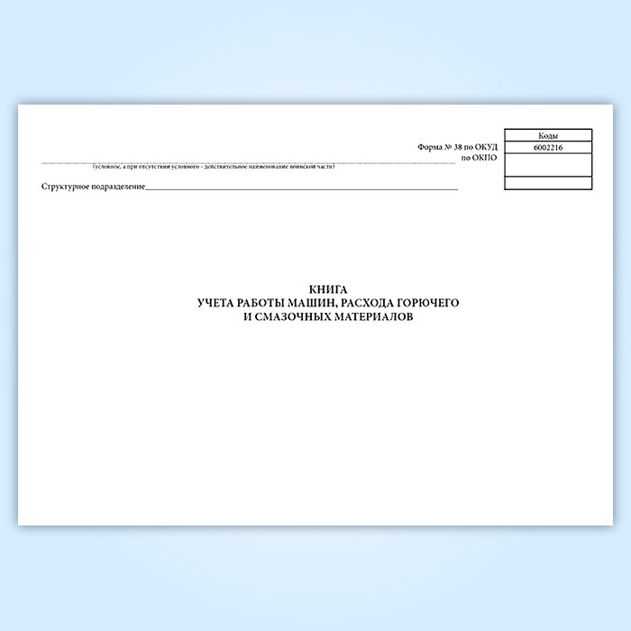 Книга учета работы машин, расхода горючего и смазочных материалов (форма 38, ОКУД 6002216) в Бердске купить