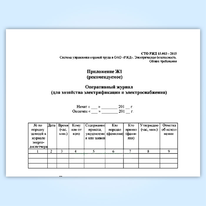 Оперативный журнал (для хозяйства электрификации и электроснабжения) (СТО РЖД 15.013-2015) в Бердске купить