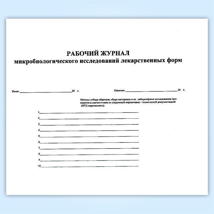 Рабочий журнал микробиологических исследований лекарственных форм (382/у) в Бердске купить