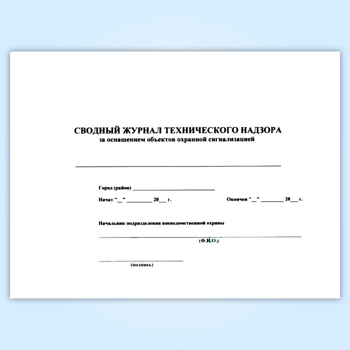 Сводный журнал технического надзора за оснащением объектов охранной сигнализацией в Бердске купить