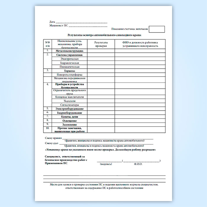 Вахтенный журнал машиниста автомобильного стрелового крана в Бердске купить