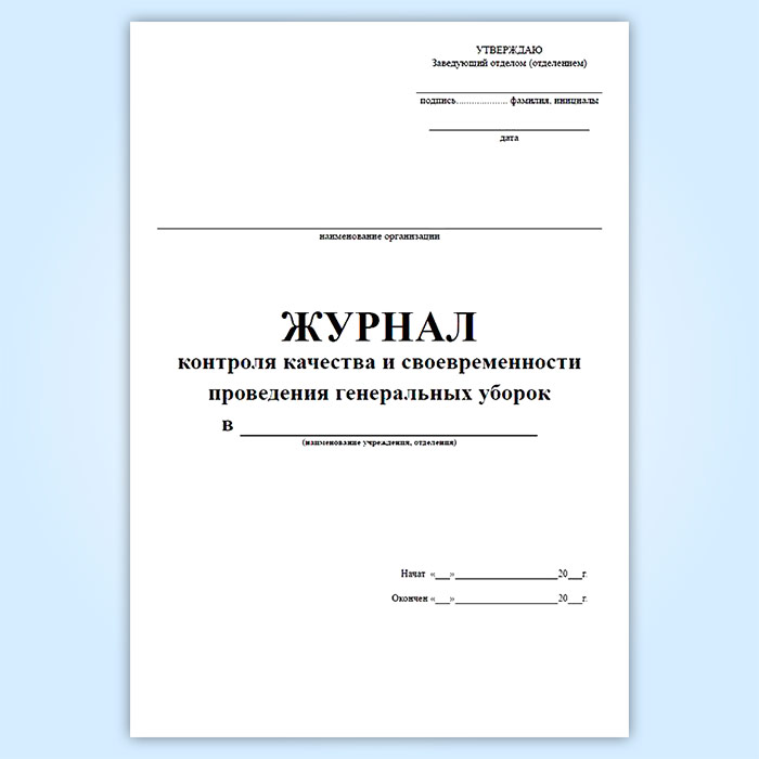 Журнал контроля качества и своевременности проведения генеральных уборок в Бердске купить